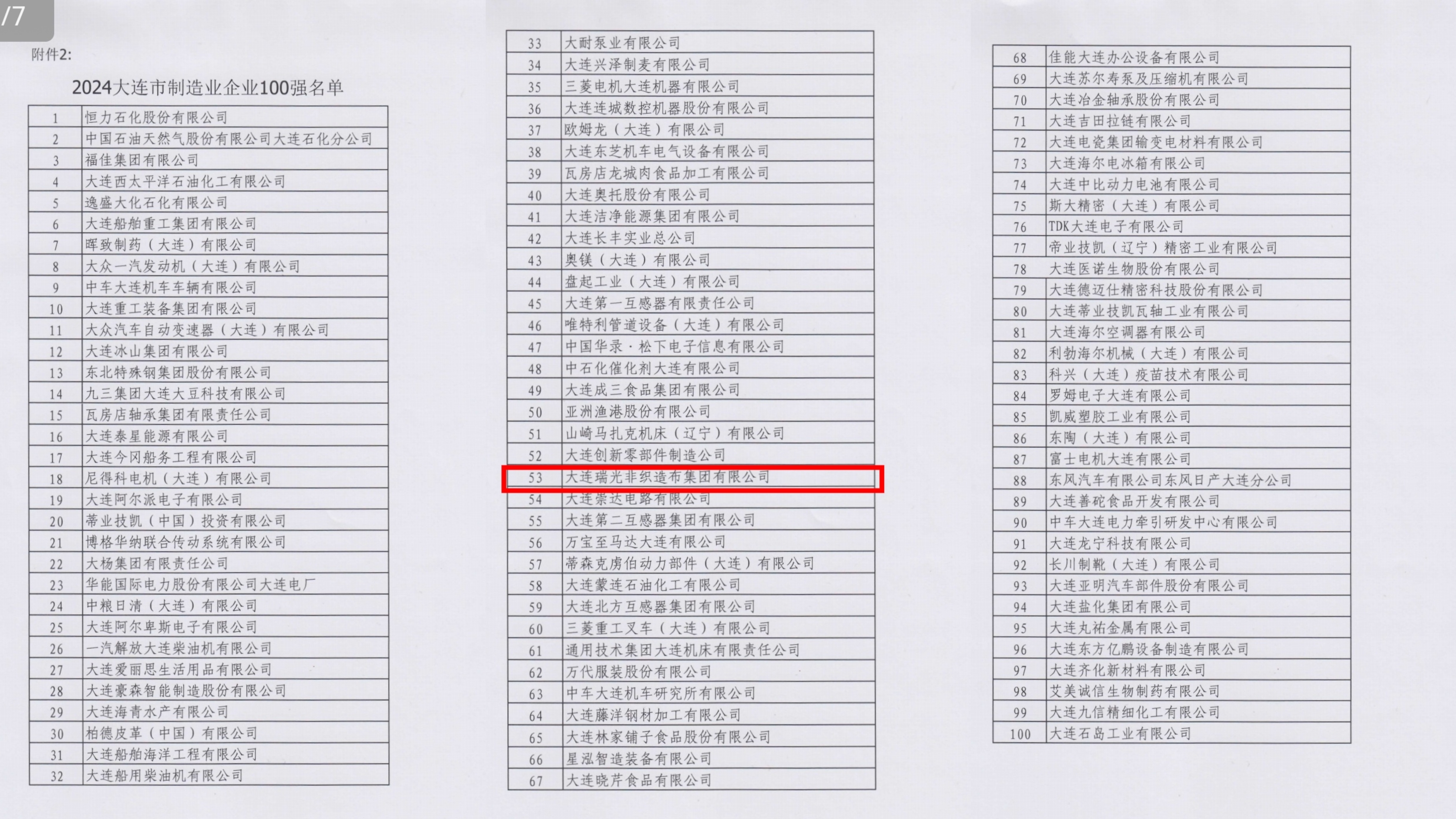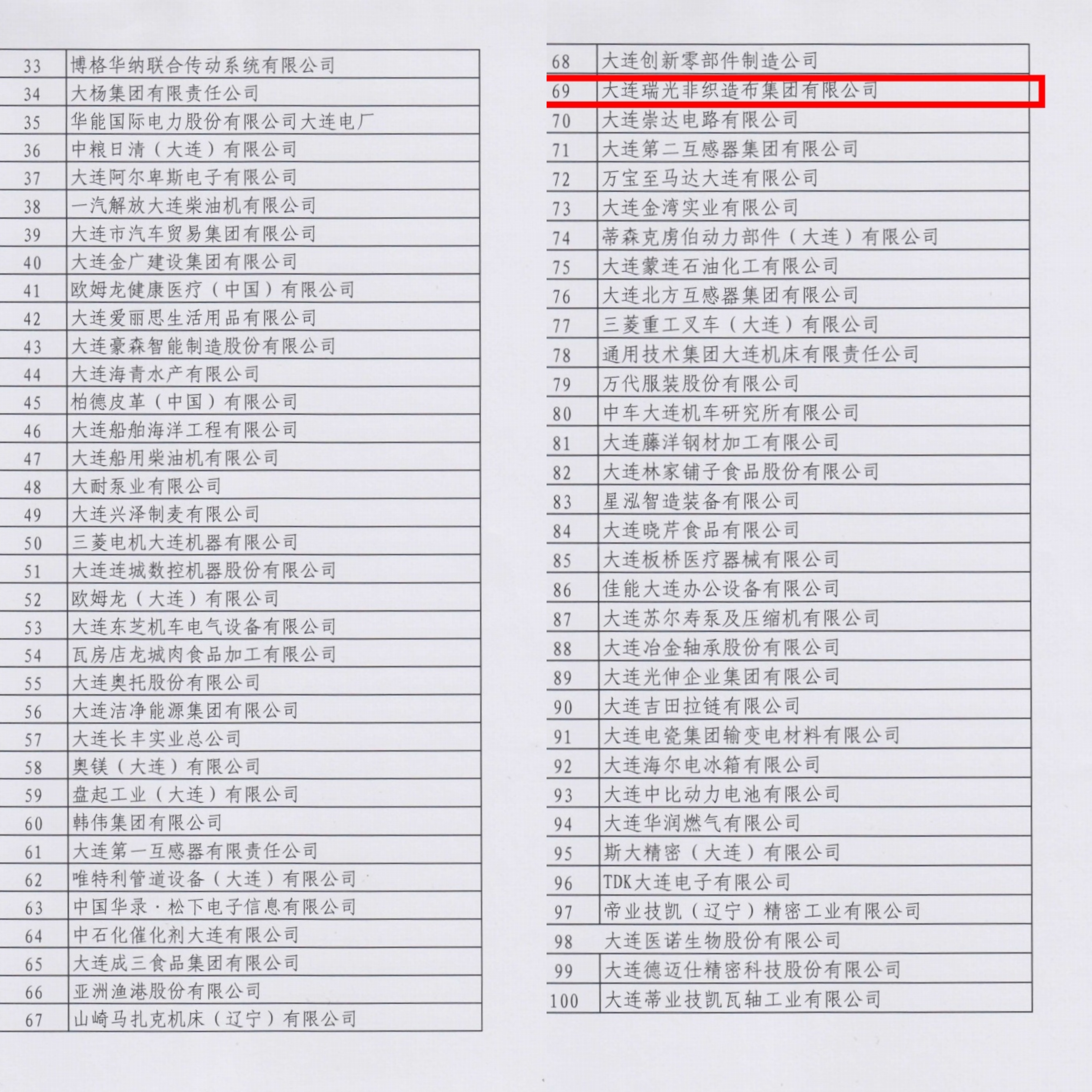 In order to fully implement the spirit of the Third Plenary Session of the 20th CPC Central Committee, promote the construction of a modern industrial system with Dalian characteristics, stimulate the initiative and creativity of vigorously developing new quality productivity, and lead enterprises to become stronger, better and bigger, Dalian Enterprise Federation and Dalian Entrepreneurs Association, in accordance with the international practice, on the basis of voluntary declaration of enterprises and review by relevant departments, Based on the sales revenue of enterprises in 2023, the list of Top 100 enterprises in Dalian in 2024 and Top 100 Manufacturing enterprises in Dalian in 2024 is launched. This is the 19th consecutive time that Dalian Enterprise Federation and Dalian Entrepreneurs Association have released the list of Top 100 enterprises in Dalian, and the third consecutive time that they have released the list of top 100 manufacturing enterprises in Dalian. It is a great honor that Dalian Ruiguang Nonwovens Group Co., Ltd. won the honorary titles of "Top 100 Dalian Enterprises in 2024" and "Top 100 Dalian Manufacturing Enterprises in 2024".